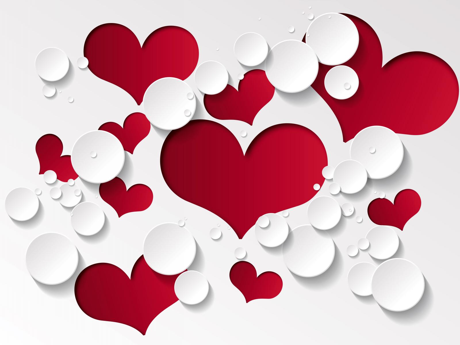 Wallpaper Red hearts and white circles on a white background