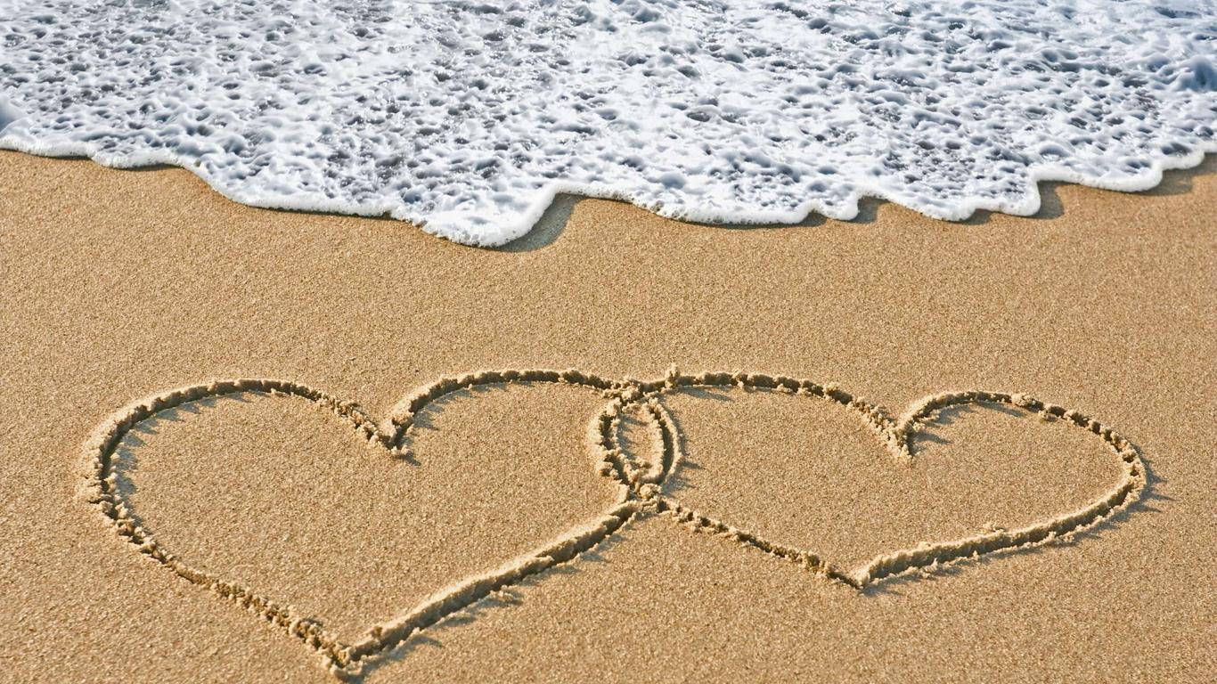 Wallpaper Two hearts on the sea sand