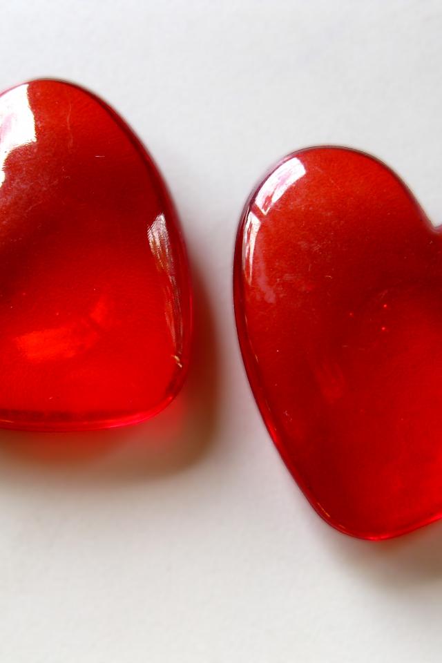 Wallpaper Two red glass hearts on a gray background