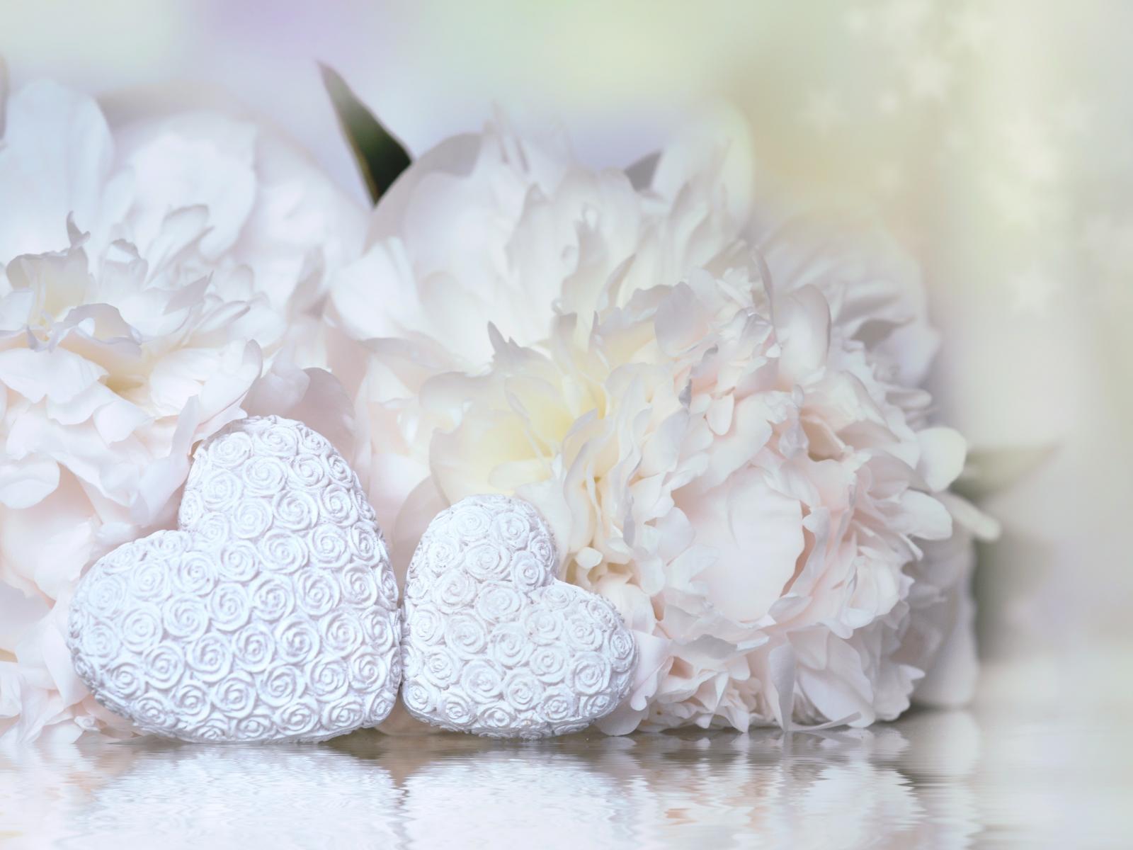 Wallpaper Two white hearts with peony flowers