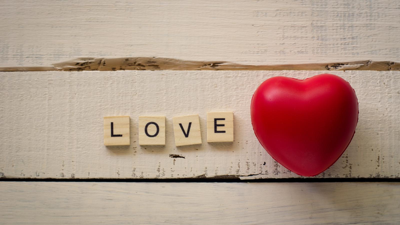 Wallpaper Heart with a fir branch and toys with cubes for Christmas