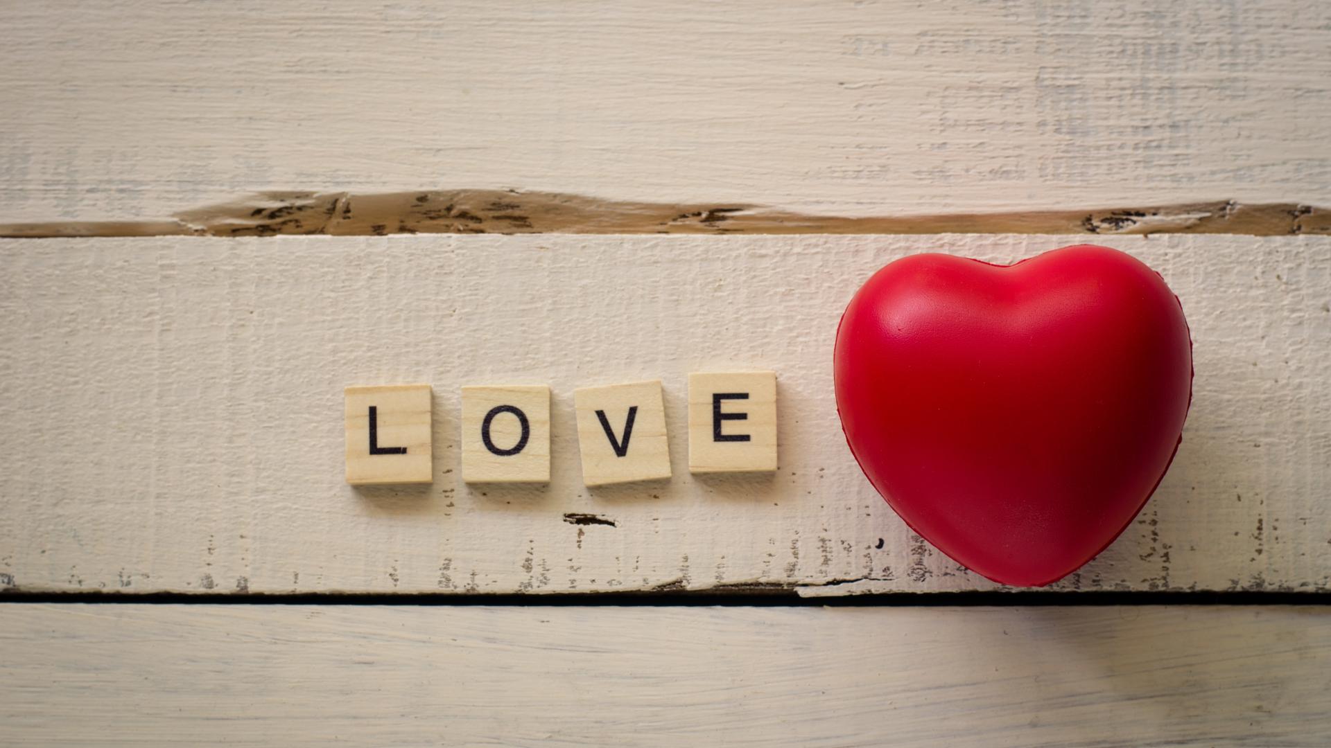 Wallpaper Cubes with letters I love you against the red heart