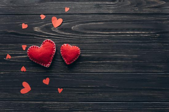 Wallpaper Two big red hearts with small ones on a wooden table