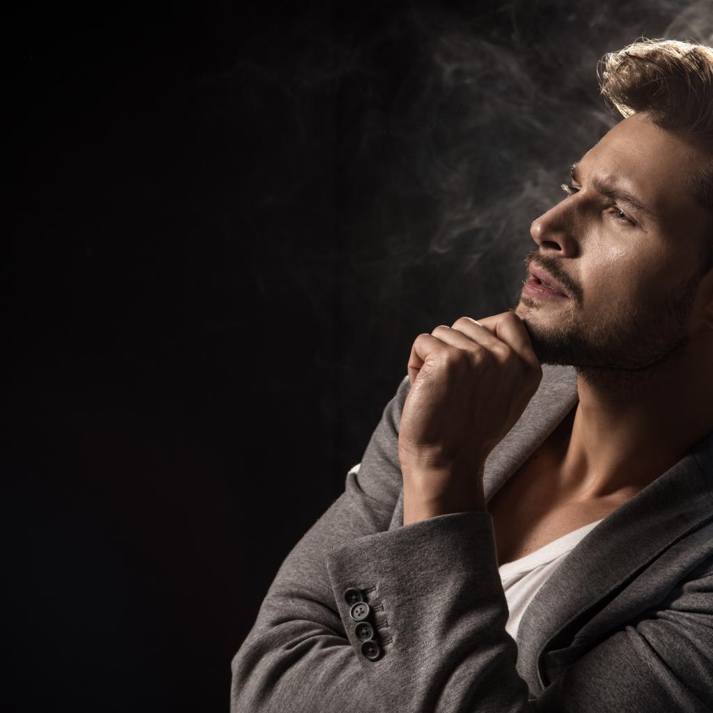 Wallpaper A handsome pensive man in a gray jacket