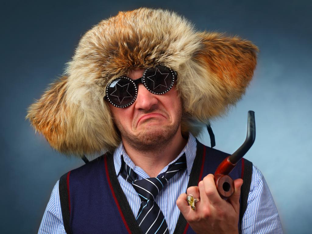Wallpaper A man in a fur hat wearing fashionable glasses with a pipe in his hand