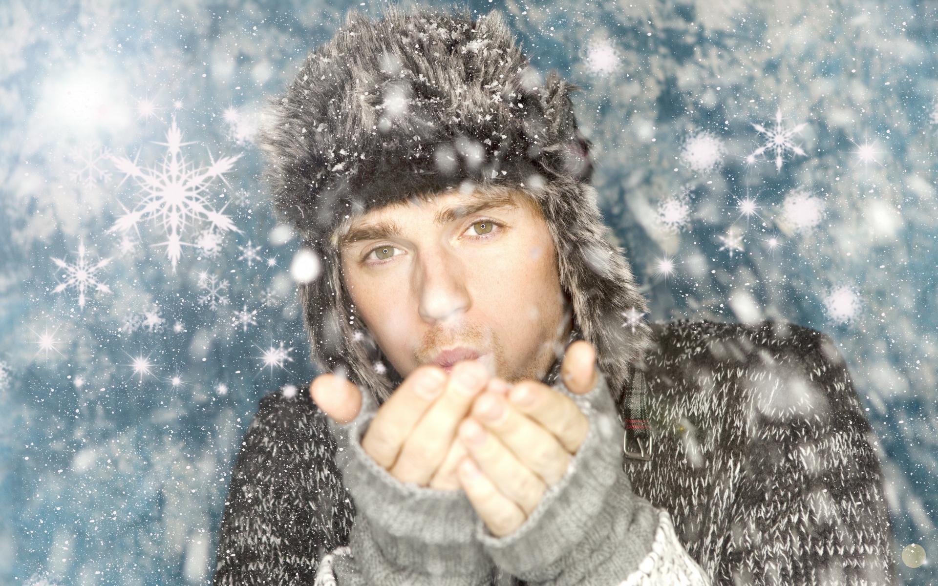 Wallpaper A young guy in a warm hat freezes in the winter