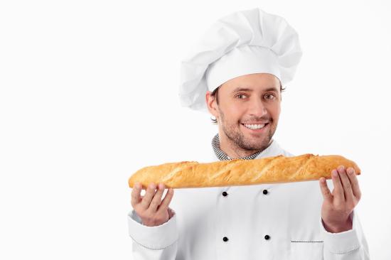 Wallpaper Male cook in a suit with a loaf in his hands