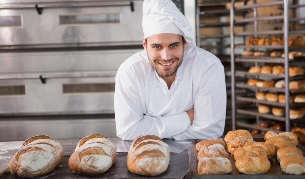 Wallpaper Handsome smiling male baker in uniform.