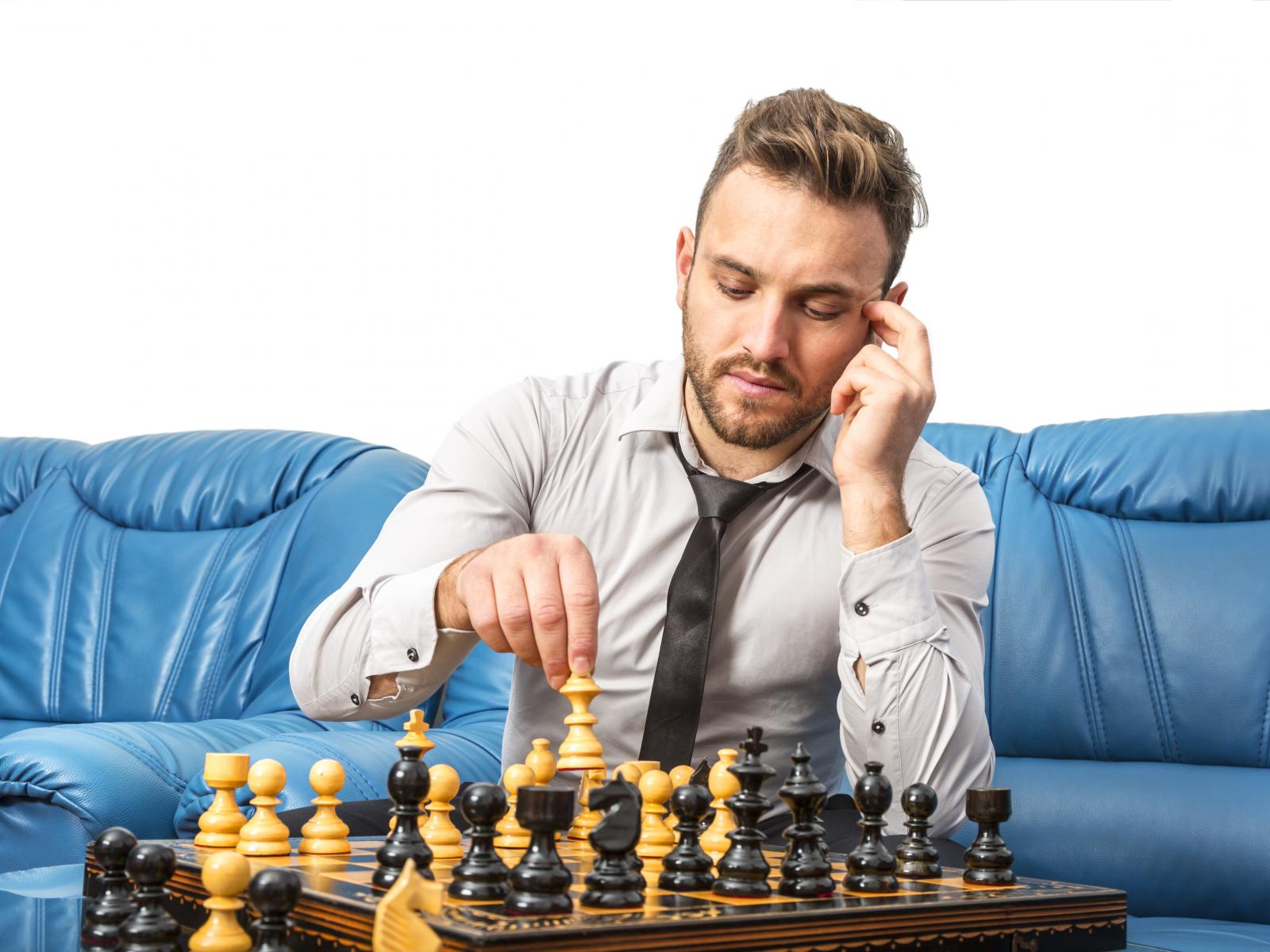 » Wallpaper Man playing chess on a blue sofa