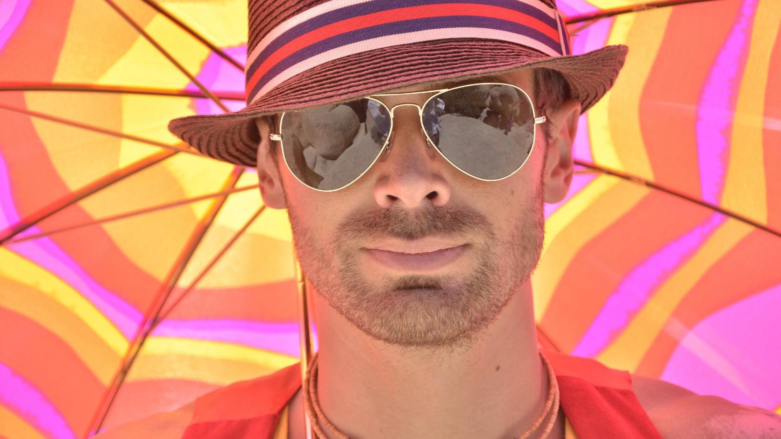 Wallpaper A man in sunglasses and a summer hat