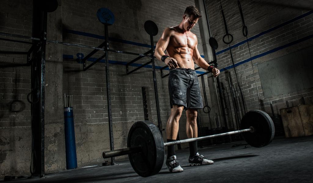 Wallpaper Male athlete raises the bar in the gym