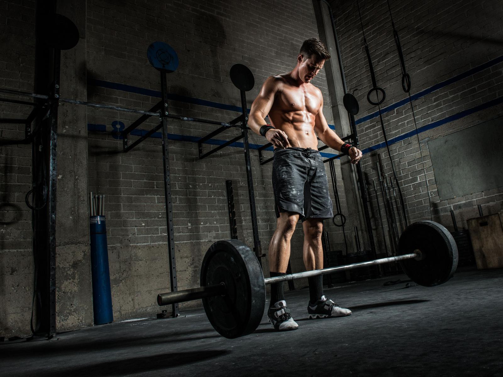 Wallpaper Male athlete raises the bar in the gym