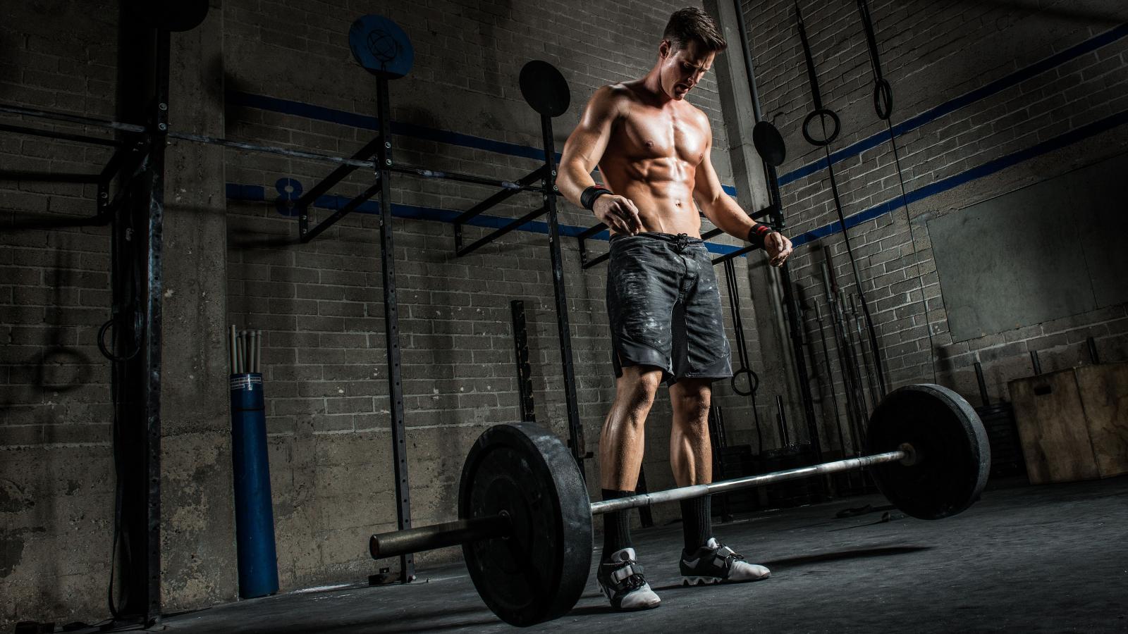 Wallpaper Male athlete raises the bar in the gym