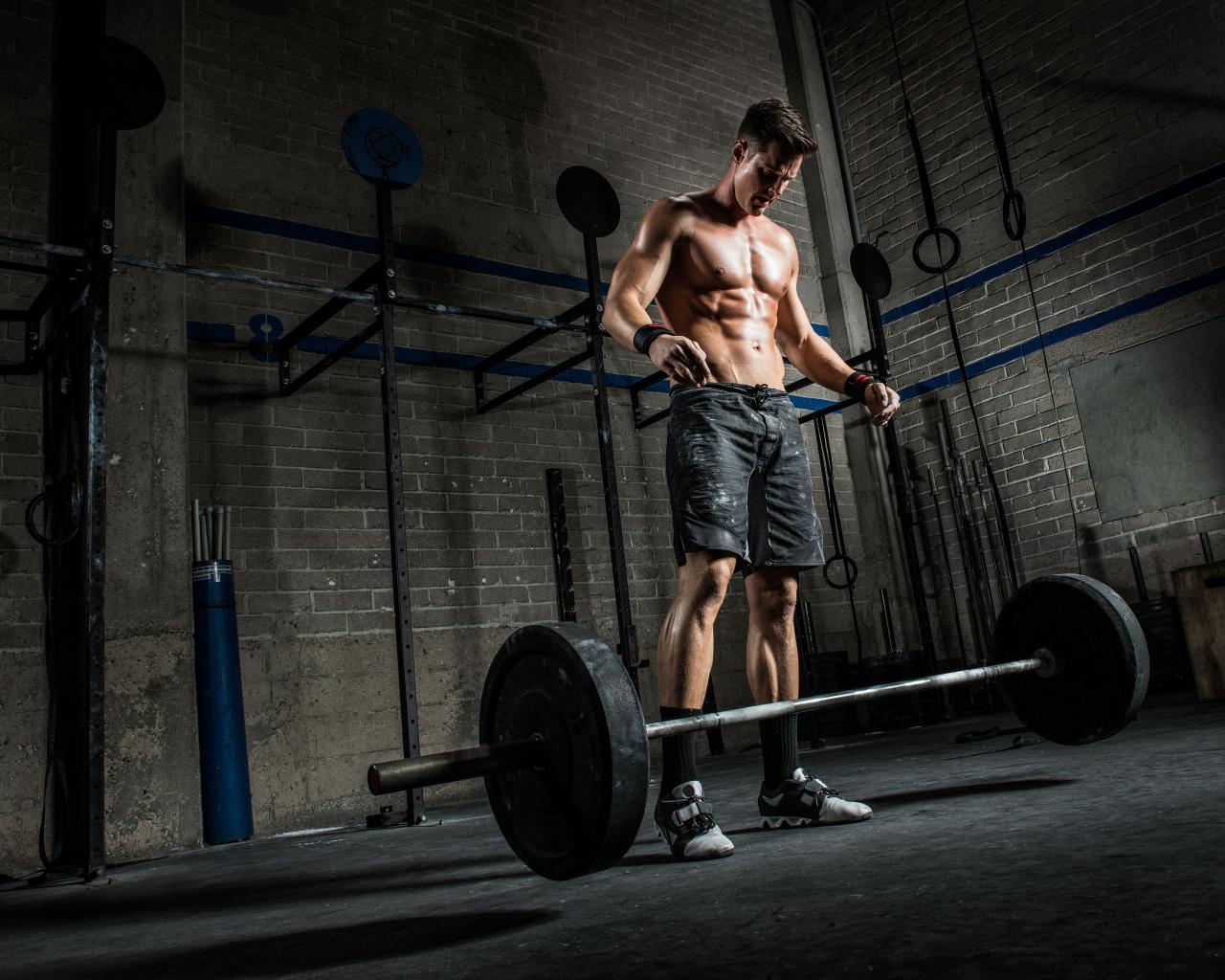 Wallpaper Male athlete raises the bar in the gym