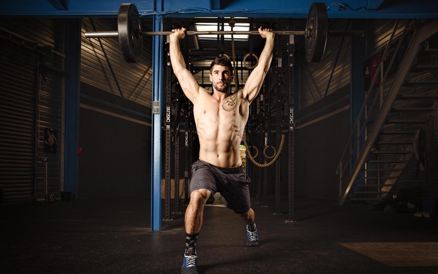 Wallpaper Athletic man with a barbell in his hands