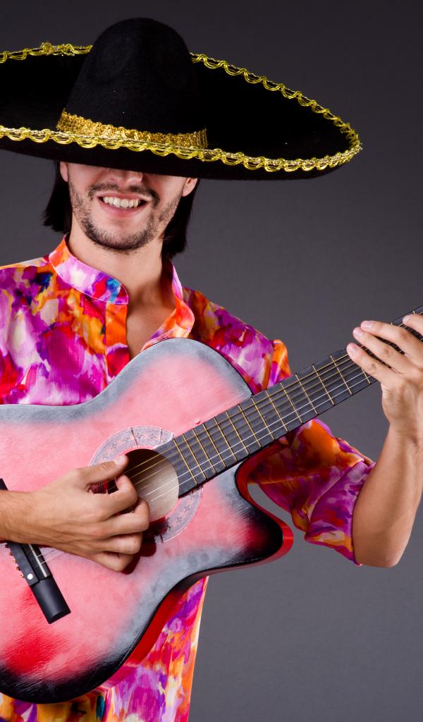 Wallpaper A man in a sombrero with a guitar in his hands on a gray background