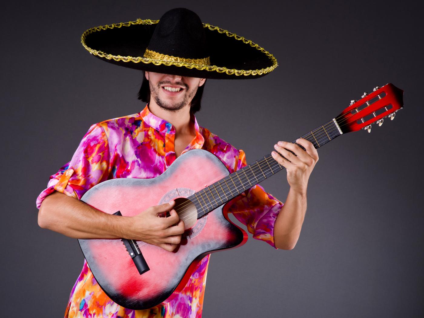 Wallpaper A man in a sombrero with a guitar in his hands on a gray background