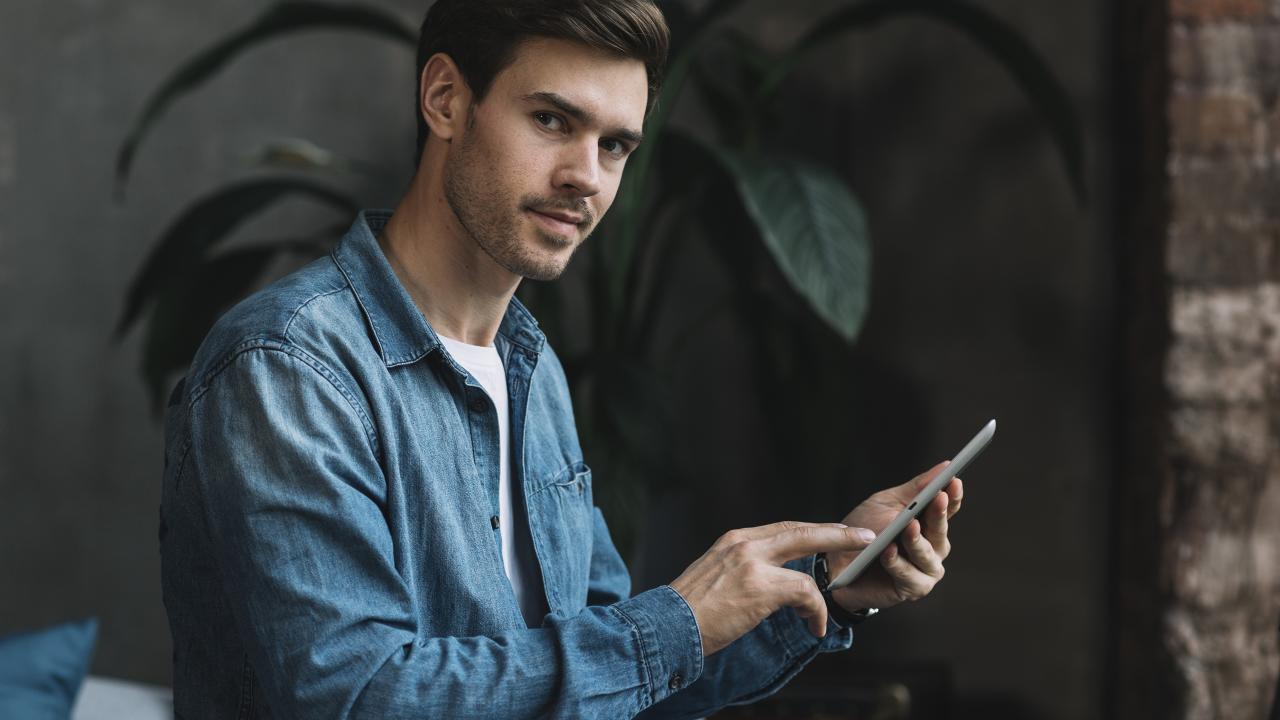 Wallpaper Handsome man with a smartphone in his hand