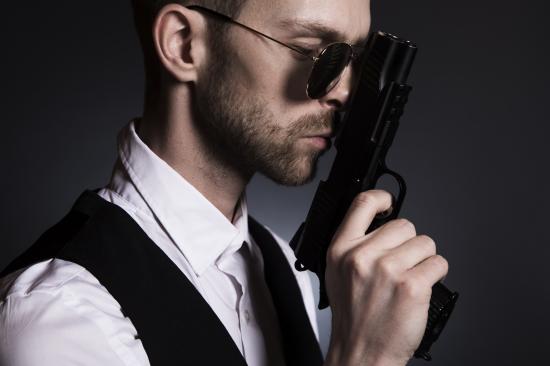 Wallpaper Man in glasses with a gun in his hand.