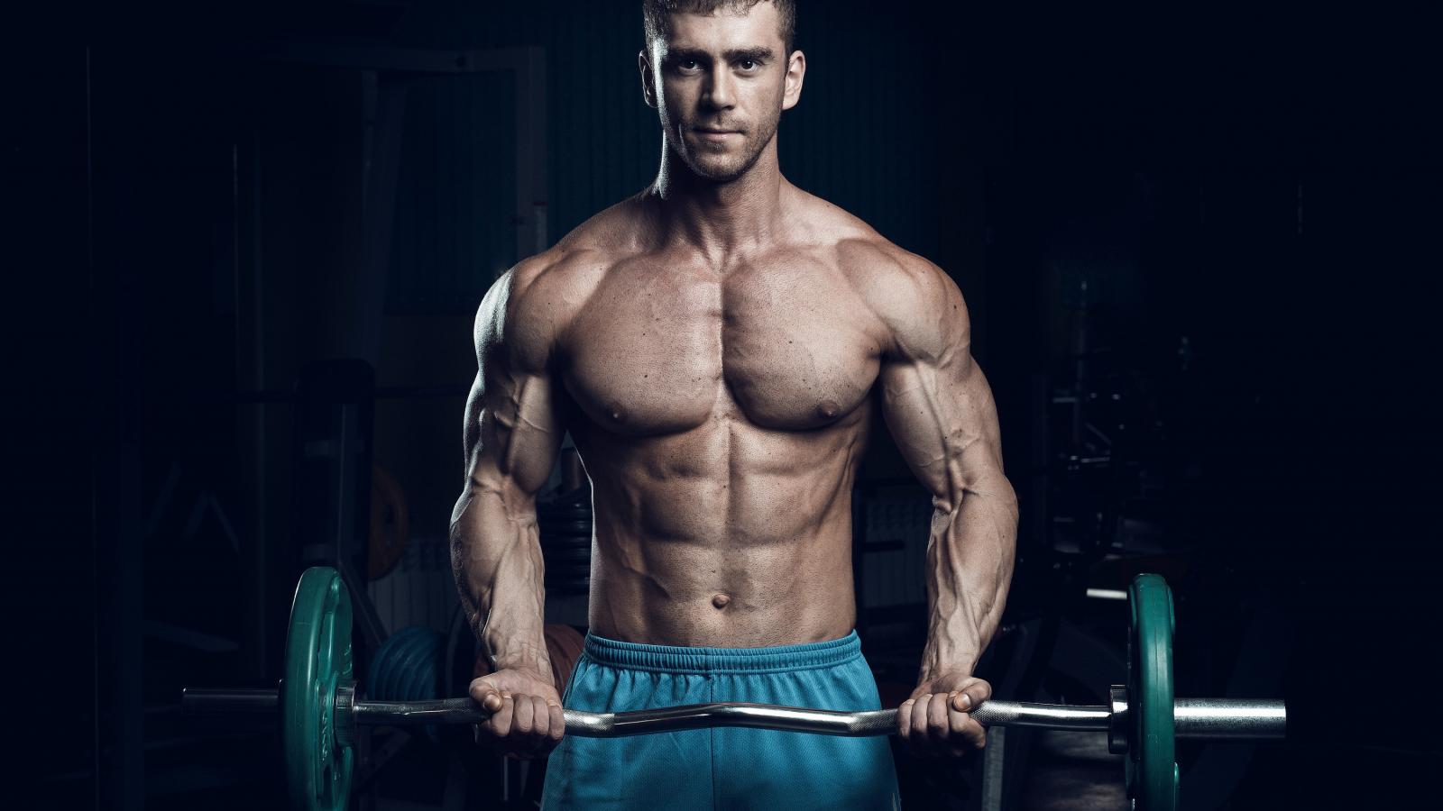 Wallpaper Handsome man with a barbell in his hands