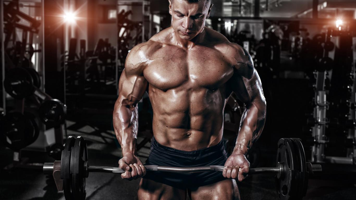 Wallpaper Muscular man with a barbell in his hands in the gym