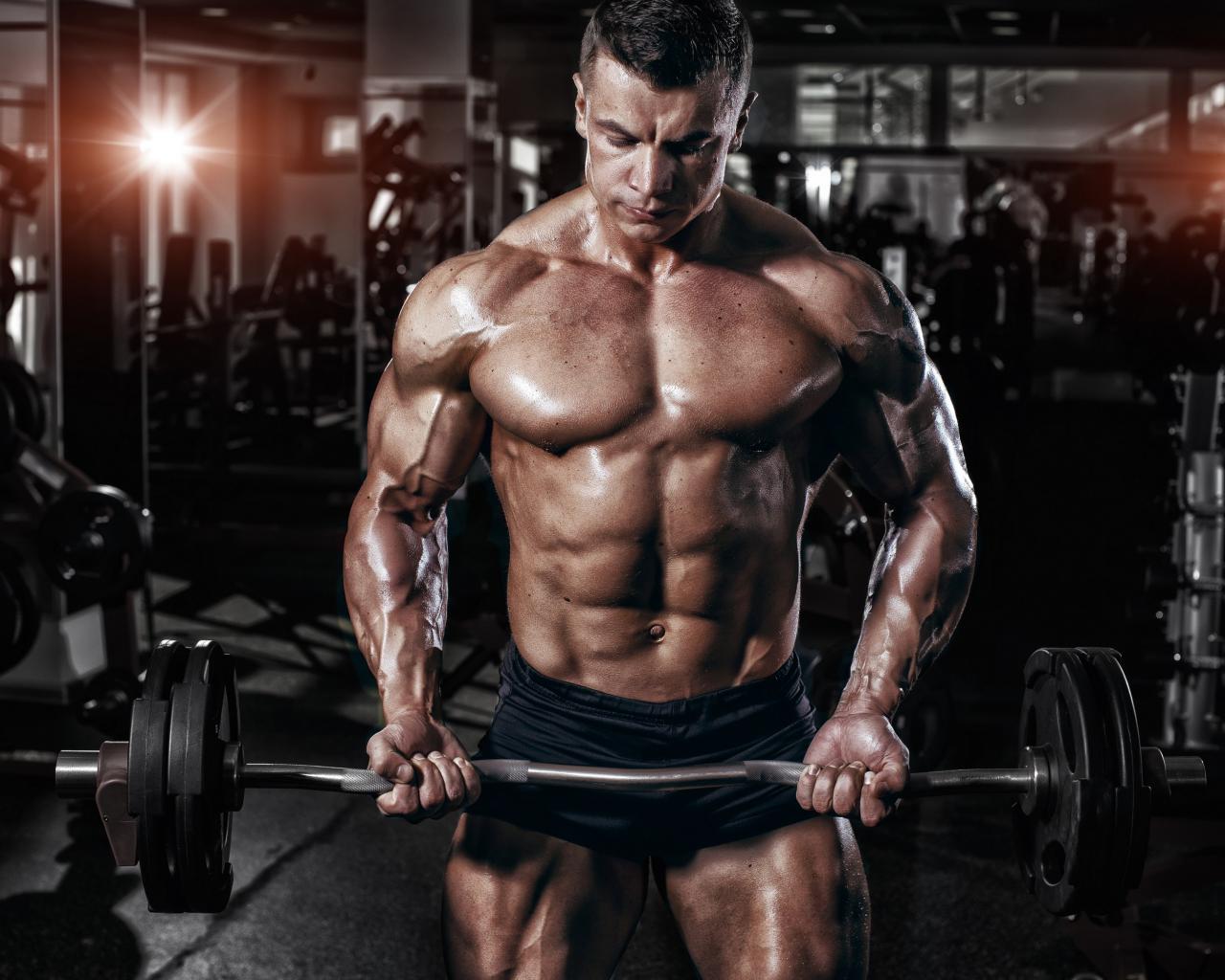 Wallpaper Muscular man with a barbell in his hands in the gym