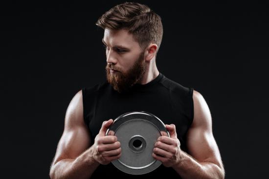 Wallpaper Young guy with an iron disk on a black background