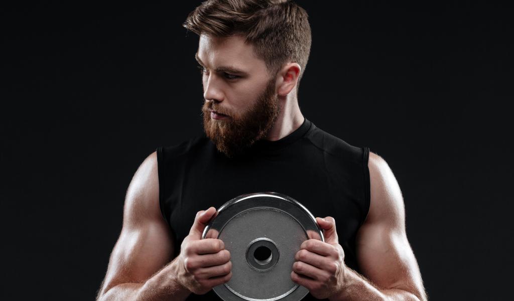Wallpaper Young guy with an iron disk on a black background