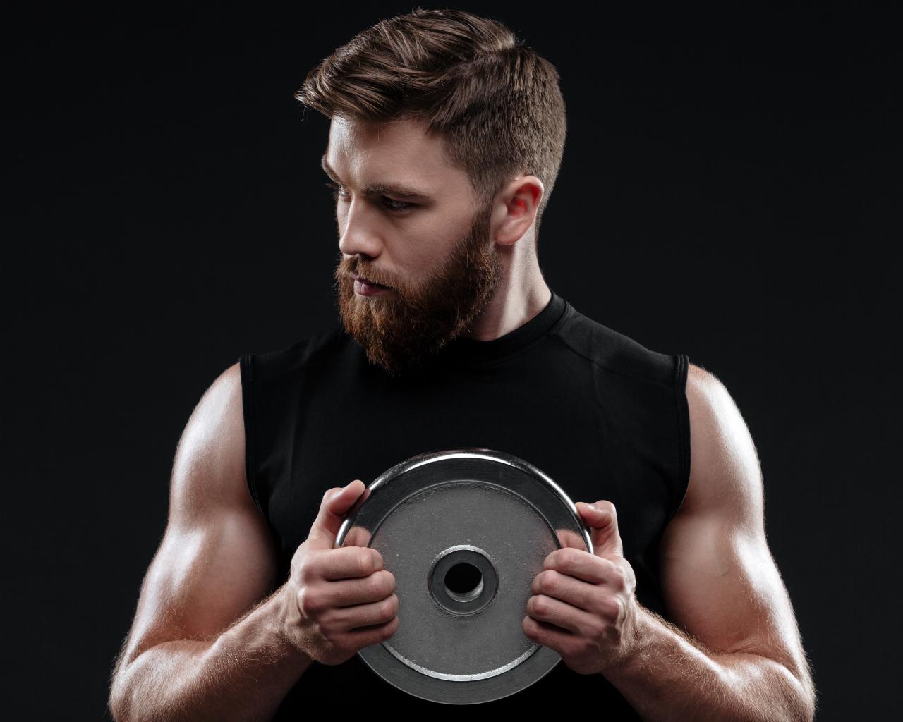 Wallpaper Young guy with an iron disk on a black background