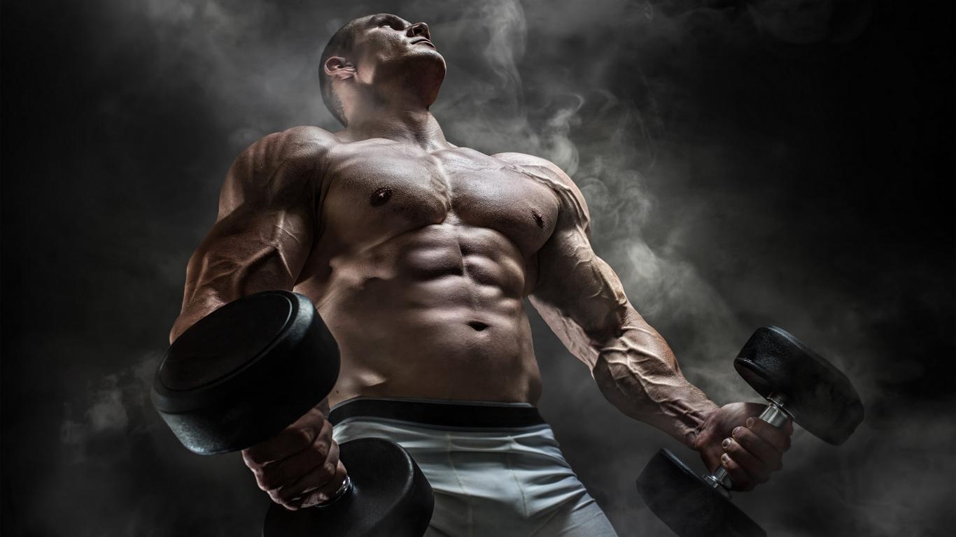 Wallpaper Male bodybuilder with heavy dumbbells in his hands.
