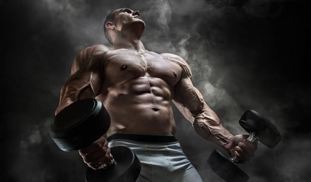 Wallpaper Male bodybuilder with heavy dumbbells in his hands.