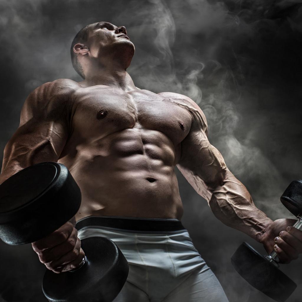Wallpaper Male bodybuilder with heavy dumbbells in his hands.