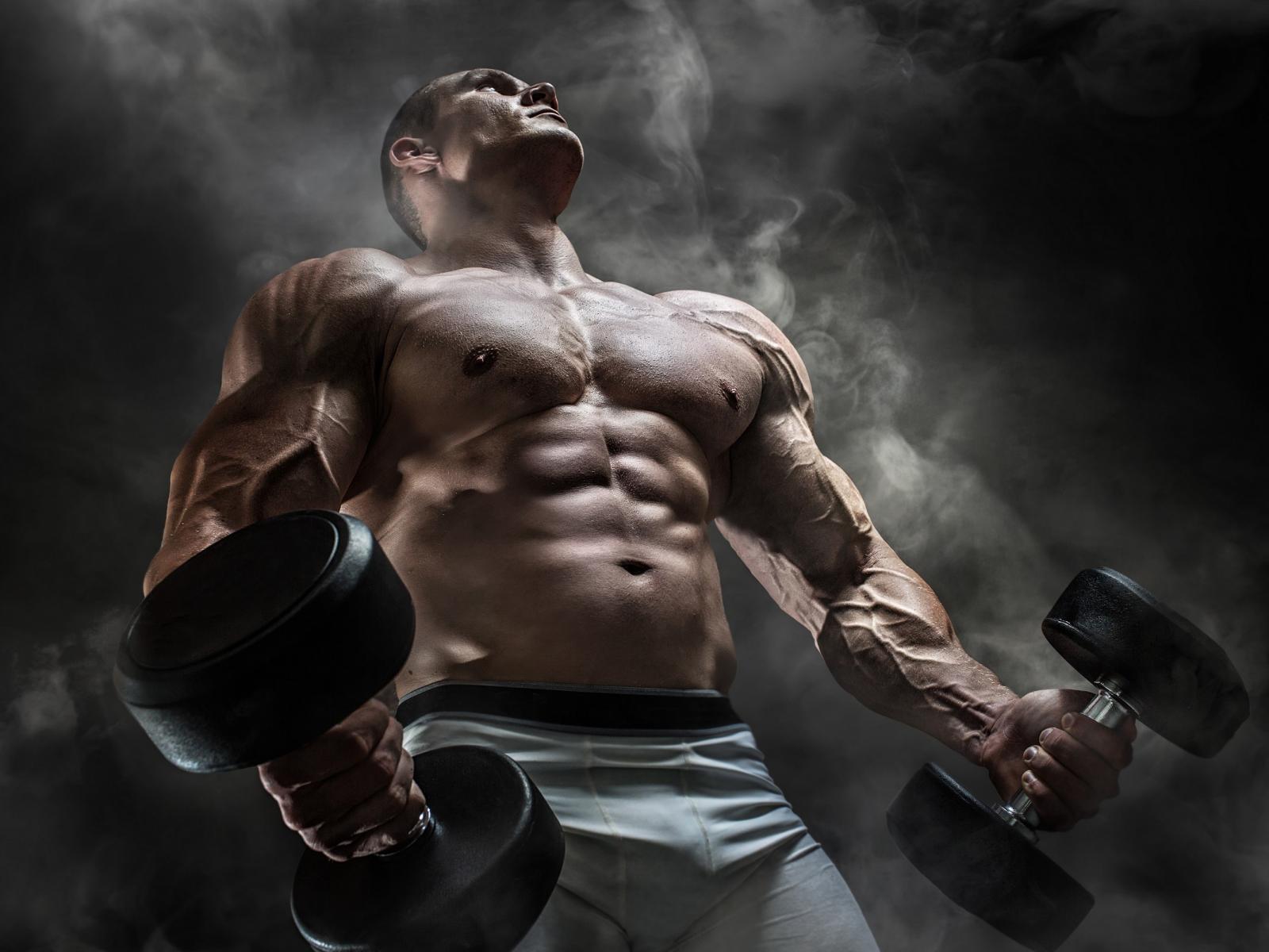 Wallpaper Male bodybuilder with heavy dumbbells in his hands.