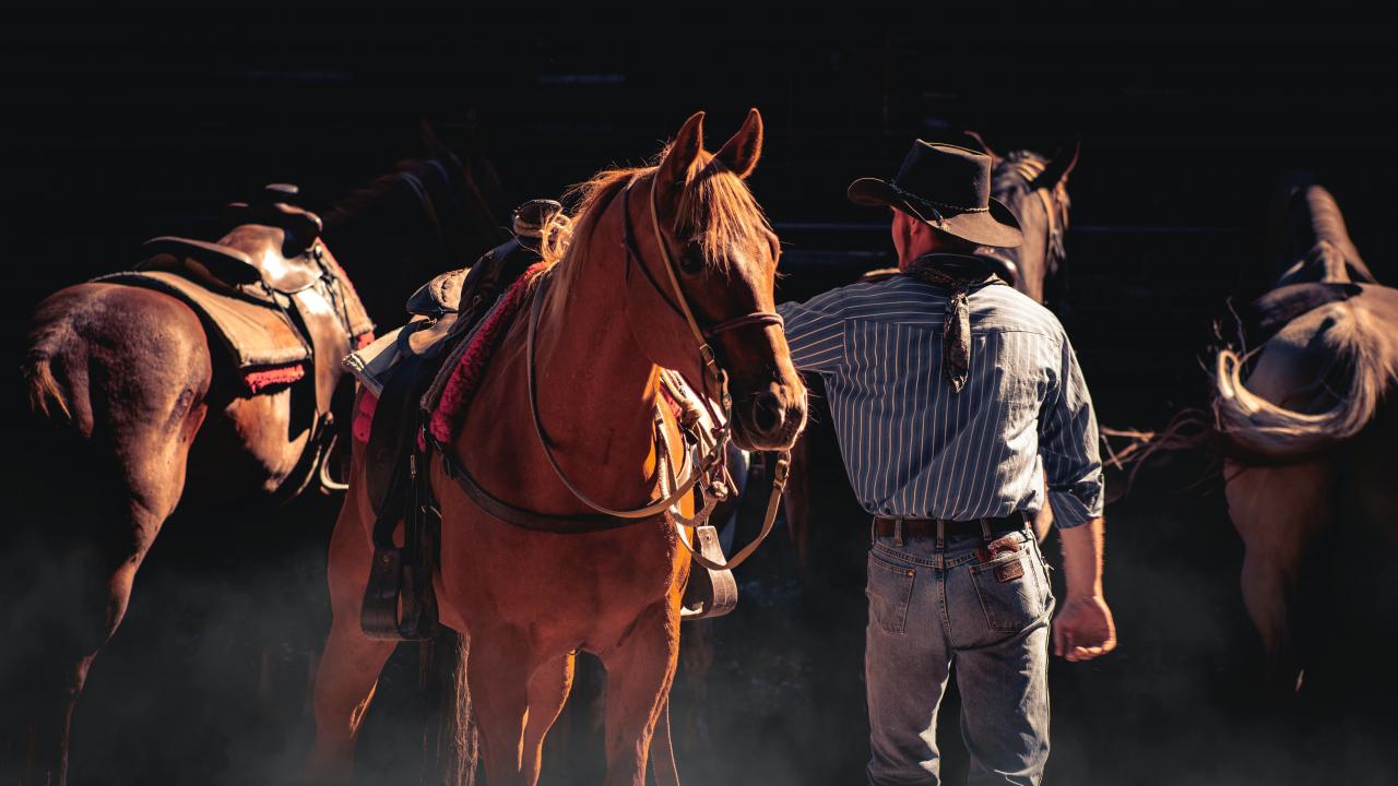 Wallpaper Male cowboy with brown horse