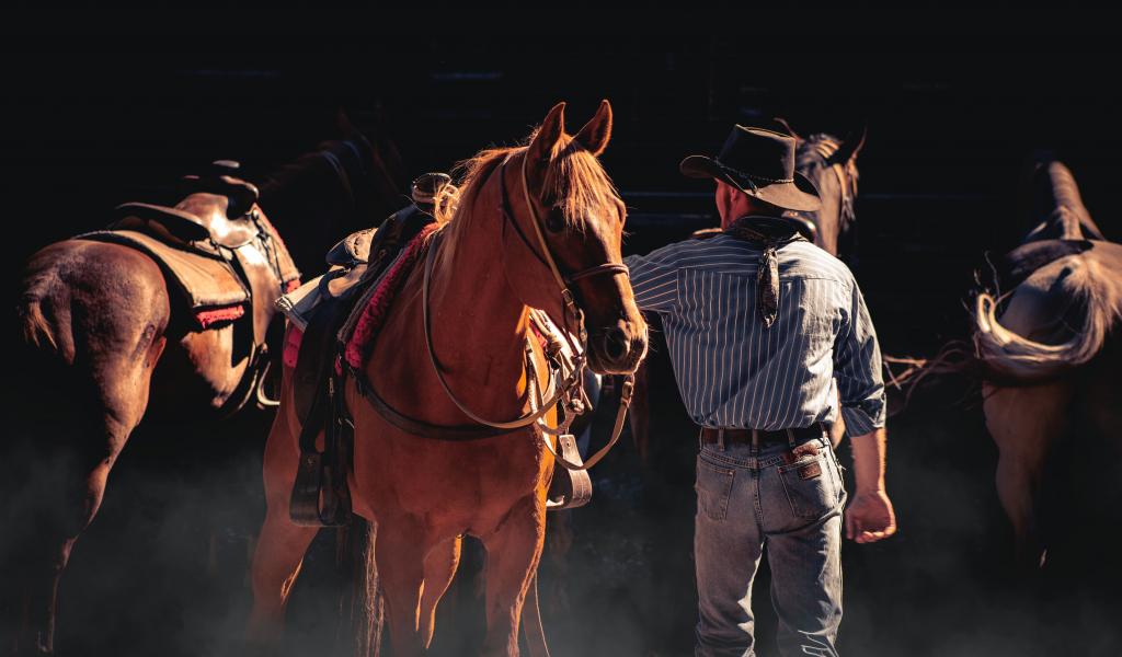 Wallpaper Male cowboy with brown horse