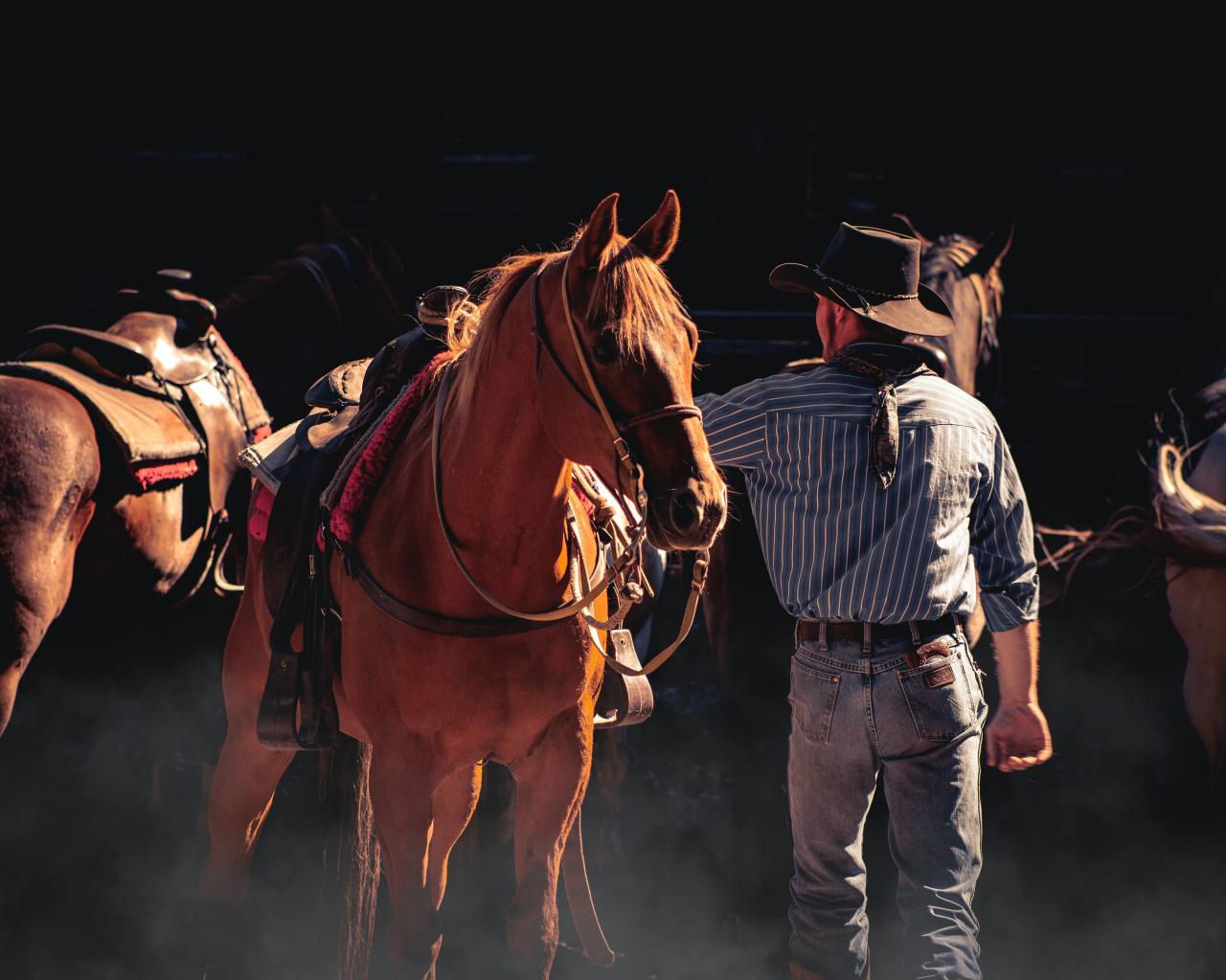 Wallpaper Male cowboy with brown horse