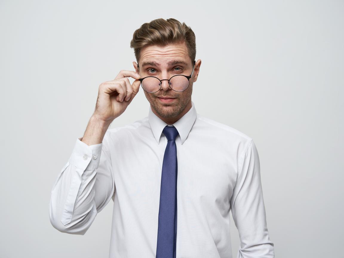 Wallpaper Stylish man in white shirt with glasses