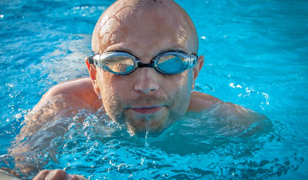 Wallpaper Male swimmer with glasses in the pool