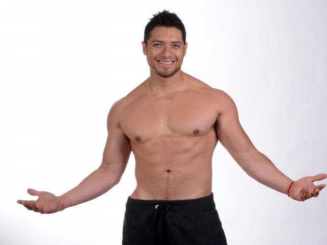 Wallpaper Smiling muscular man on gray background