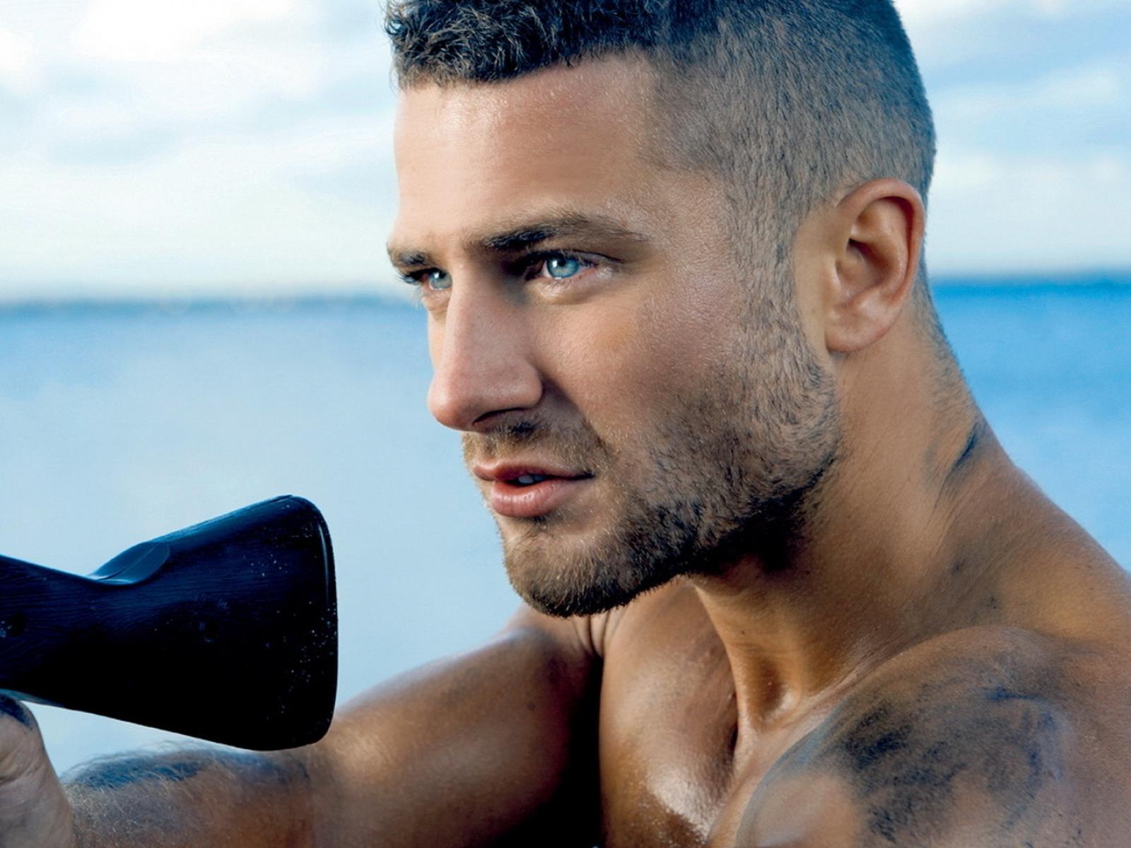 Wallpaper Strong blue-eyed man with a rifle in his hands