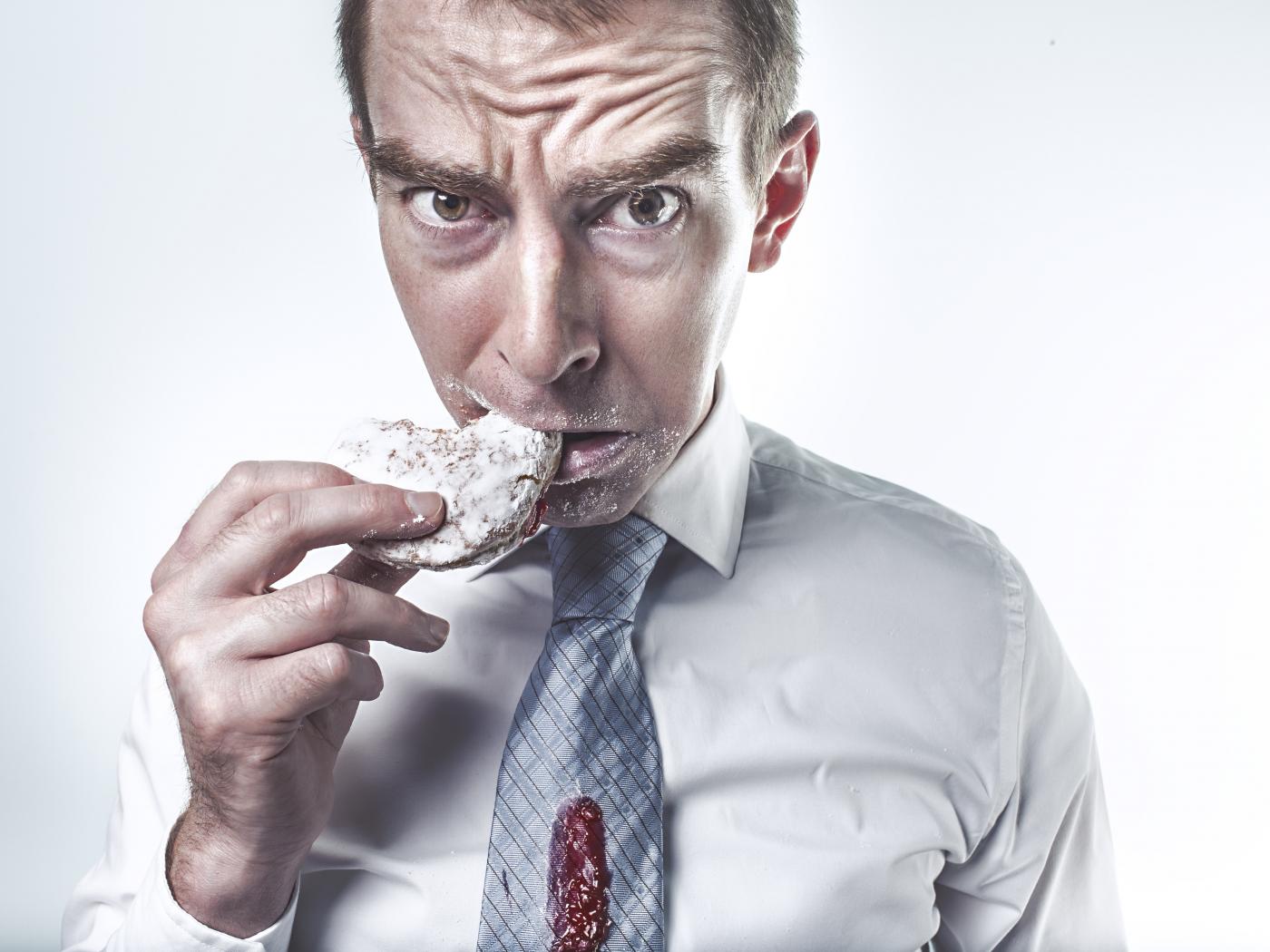 Wallpaper A man in a shirt gnaws a gingerbread