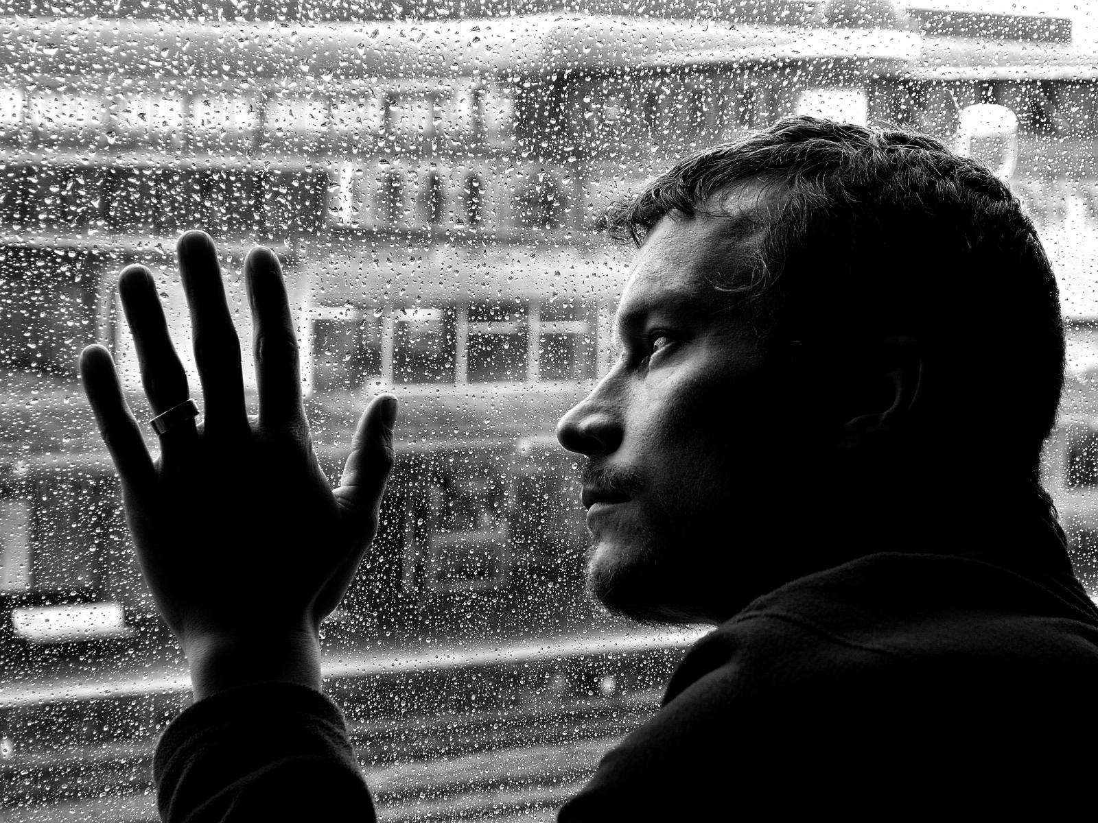 » Wallpaper Sad man stands at the wet window
