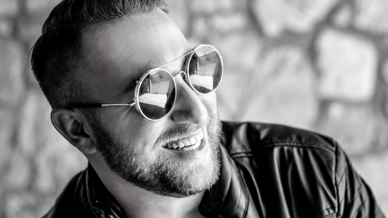 Wallpaper Smiling brutal man in black glasses
