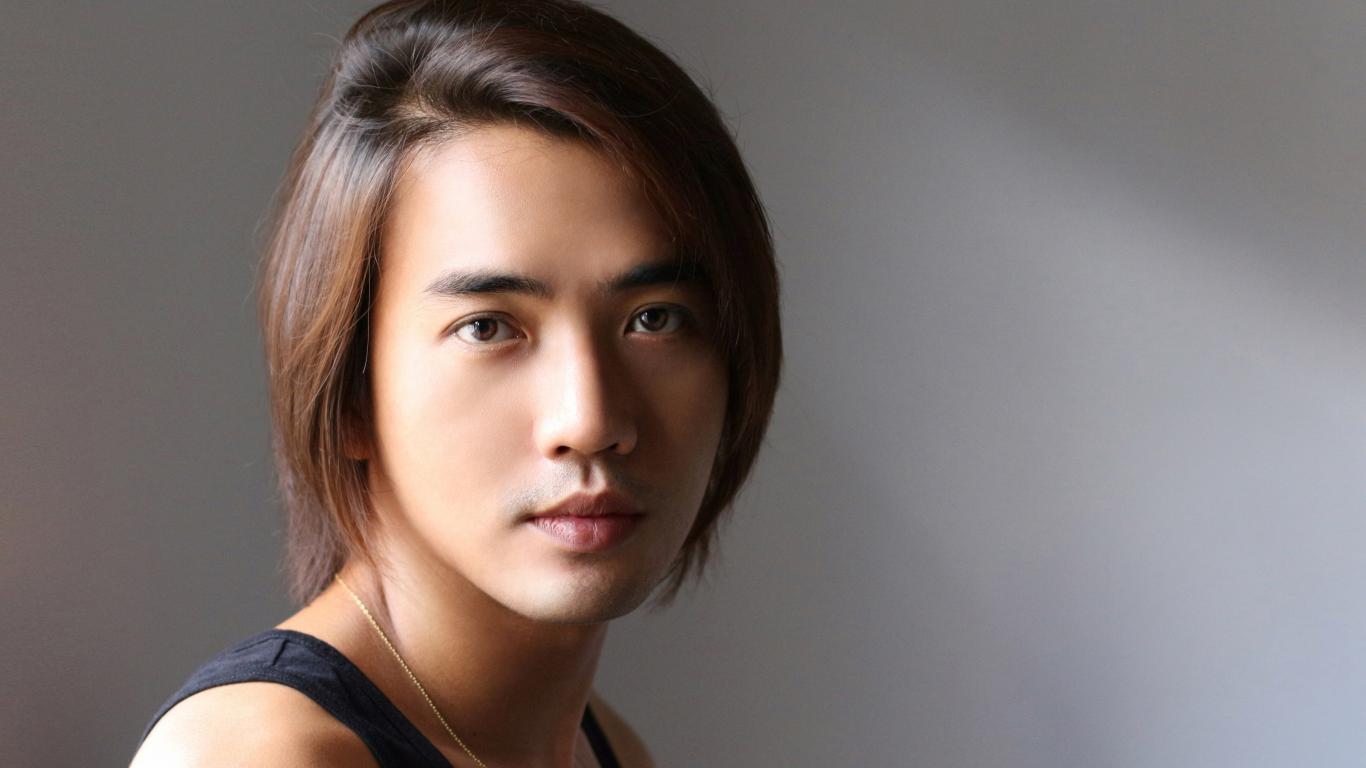 Wallpaper Cute brown-eyed girl with beautiful long hair on a gray background
