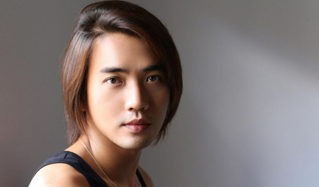 » Wallpaper Brown-eyed man on gray background