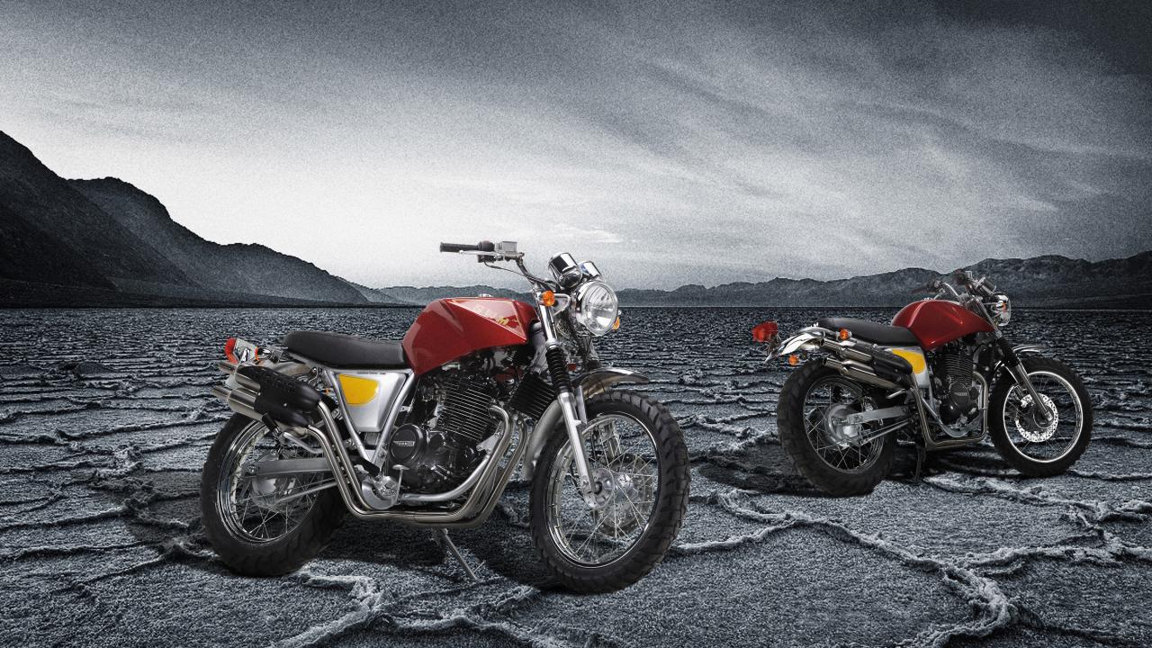 Wallpaper Two SWM Silver Vase 440 motorcycles under a stormy sky