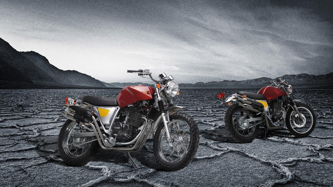 Wallpaper Two SWM Silver Vase 440 motorcycles under a stormy sky