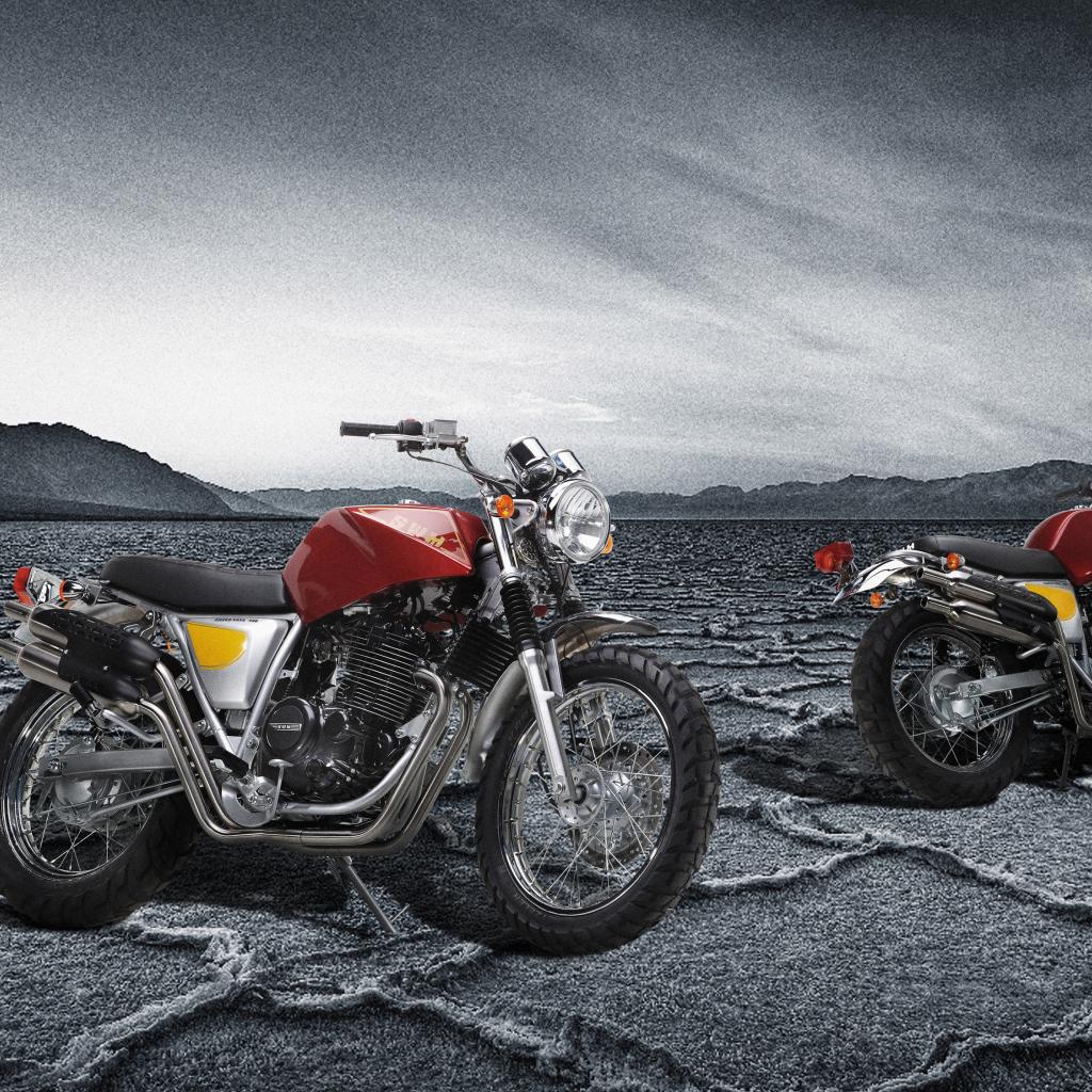 Wallpaper Two SWM Silver Vase 440 motorcycles under a stormy sky