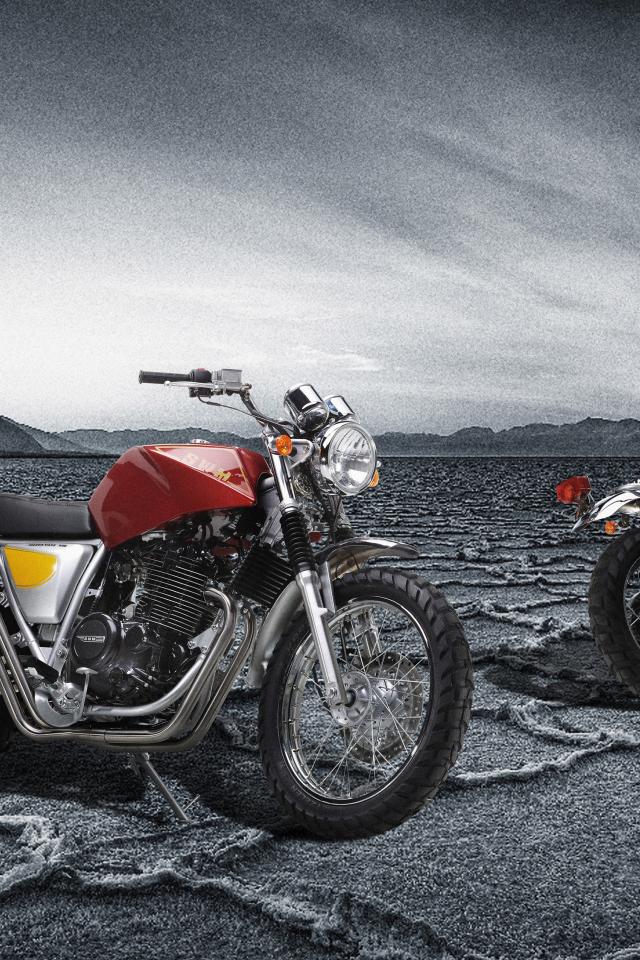 Wallpaper Two SWM Silver Vase 440 motorcycles under a stormy sky