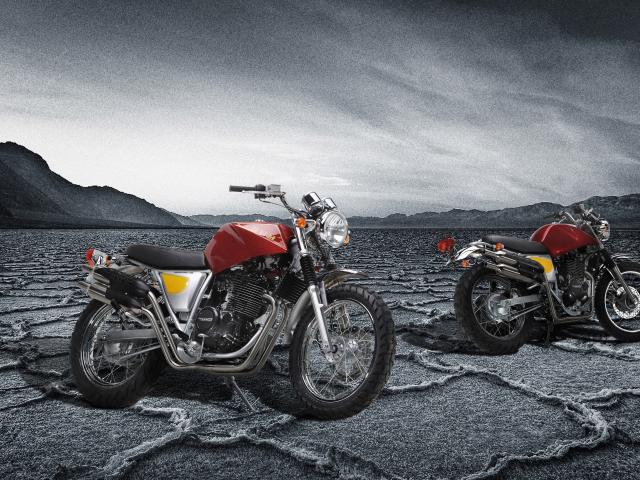 Wallpaper Two SWM Silver Vase 440 motorcycles under a stormy sky